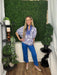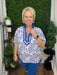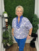 short sleeve printed top with fashion neckline - blue/white