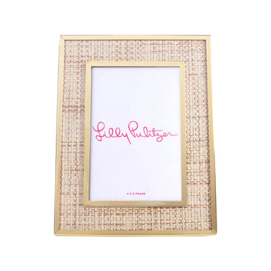 Go glam with this metal bamboo frame sized to showcase your favorite 4" x 6" photo. The easel stand paired with the raffia mat and luxe gold trim m...