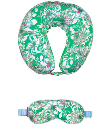 A colorful print and a whole lot of comfort define our favorite travel accessories set. The support pillow has ties to keep it in place and a phone...