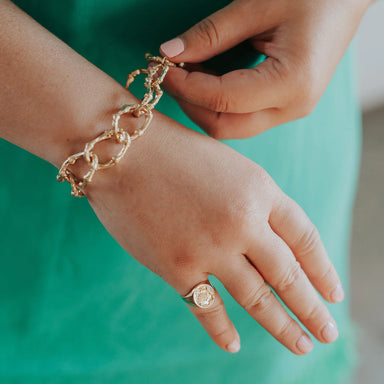 The Belle Pearl Hinge Bangle in ivory and shiny gold combines elegant design with timeless sophistication. Featuring delicate pearl accents and a p...