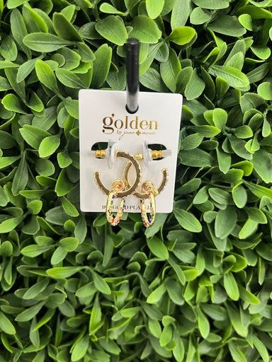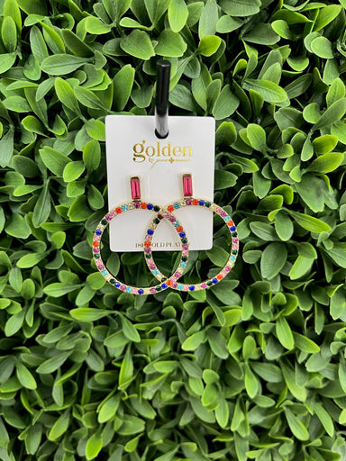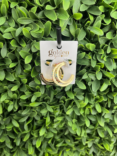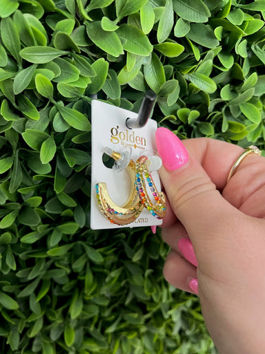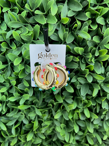 JANE MARIE18k plated thick gold hoop w/multi gems earrings
