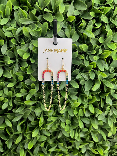 JANE MARIE18k multi crystal arch w/chain loop earrings
