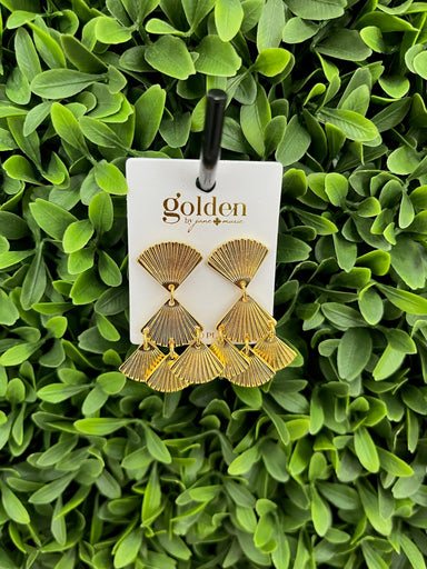 These 18K gold plated earrings feature sunburst textured and stacked fan designs, offering a sophisticated look perfect for any occasion. Their ele...