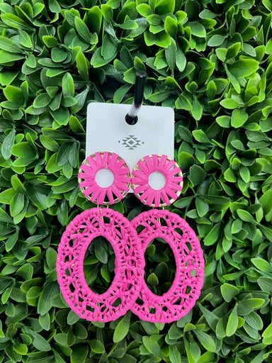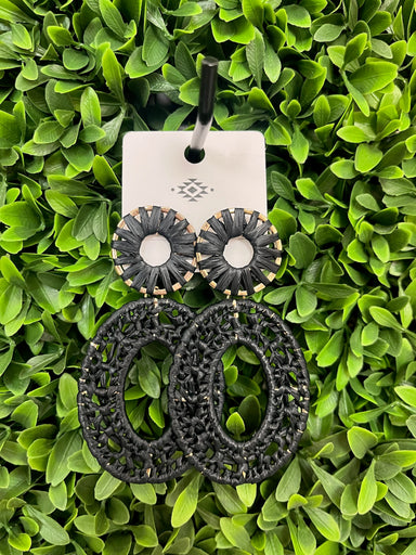 GOLDEN STELLAwrapped raffia oval shape earrings - black