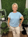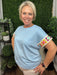 Soft and relaxed, this sky blue tee is elevated with colorful crochet sleeve panels that add a playful, handcrafted touch. The easy silhouette and smooth drape make it an effortless everyday piece with a hint of personality.