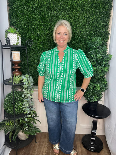 Original Price $49.99Current Price $29.99| /The Jocelyn Top in green offers a fresh, vibrant look perfect for adding a pop of color to your wardrobe. Its flattering fit and charming design ma...