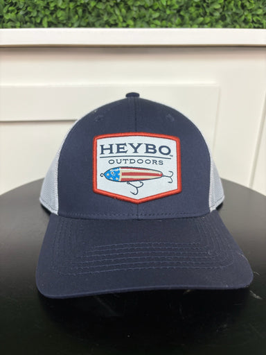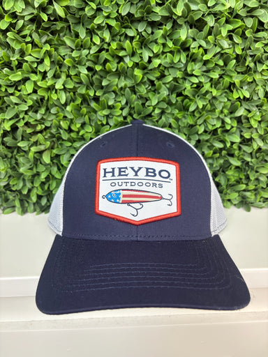 The Lure Patch Meshback Trucker in navy and white combines classic trucker style with outdoor-inspired flair. Featuring a breathable mesh back and ...