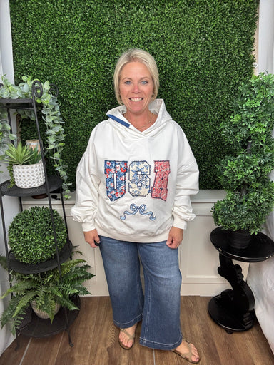 Payton, 5'5", is wearing a size small. 0126-TOP-TANK-FLWR-FLAG-