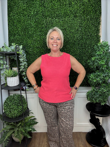 Bright and effortlessly polished, this coral sleeveless knit top is the perfect piece to refresh your warm-weather wardrobe. The soft, lightweight ...