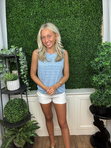 Effortlessly refined with a soft, modern feel, this sleeveless knit top is a versatile staple for any season. The subtle open-knit texture adds dim...