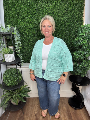 Delicate texture meets effortless layering in this lightweight open knit cardigan. Designed with a relaxed silhouette and airy woven pattern, it ad...