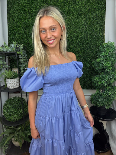 Soft, feminine, and effortlessly charming, this periwinkle midi dress is a standout piece for the season. The smocked bodice creates a flattering, ...