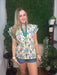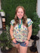 Fresh and lively, this blouse showcases a delicate allover botanical print that brings a soft, garden-inspired charm. The layered V-neckline is framed with contrast trim, creating a structured focal point that elevates the relaxed silhouette.