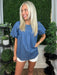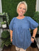 Casual yet refined, this denim top features soft front pleats that create gentle movement and a relaxed drape. The round neckline keeps the look clean and versatile, while the loose silhouette offers effortless comfort for everyday wear.