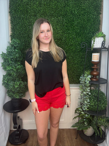 Joelle, 5'6", is wearing a size small. Payton, 5'5", is wearing a size small. Sweet and feminine, this fitted ribbed top features delicate lace t...