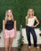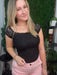 Feminine and form-fitting, this lace top features a delicate floral texture that adds depth and romance to a sleek silhouette. The soft scoop neckline and cap sleeves create a flattering frame, while the stretch fit gently contours the body for a smooth, sculpted look.