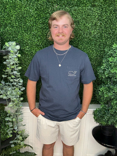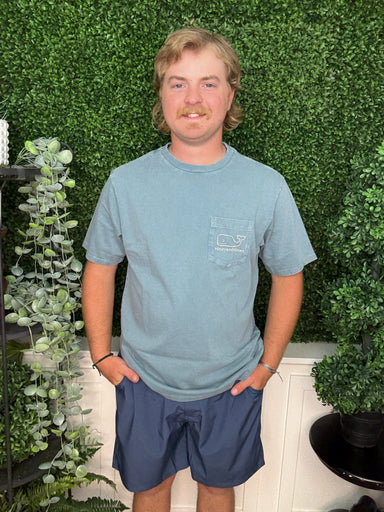 This SHORT SLEEVE VINTAGE WHALE POCKET TEE BLUE BLAZER is crafted with soft, durable cotton. It features a classic relaxed fit for everyday wear, a...