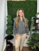 Elevate your wardrobe with this floral flutter sleeve top in ash black, featuring elegant contrast binding for a refined finish. The flutter sleeves add a delicate, dressy touch, making it perfect for special occasions or a polished everyday look. Comfortable yet sophisticated, it pairs effortlessly with skirts or tailored pants.