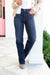 These jeans are a must-grab restock for a reason—they do everything right. The dark wash is timeless and slimming, the straight leg cut gives you that clean, lengthened line, and the frayed hem keeps the look fresh and fun.