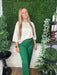 Elevate your style with these Solid High-Waist Pants in Emerald, featuring eye-catching exposed stitch details. The high waist offers a flattering fit, while the vibrant color adds a cute and stylish pop to any outfit. Perfect for dressing up or down with ease.