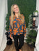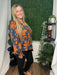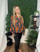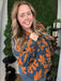 This woodnight printed rayon challis top combines soft, breathable fabric with a charming pattern perfect for fall. Its relaxed fit offers comfortable layering options, making it a cute and versatile addition to your autumn wardrobe.