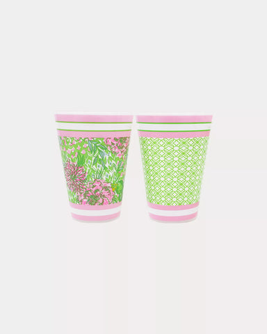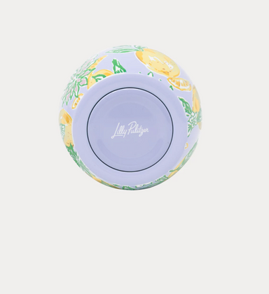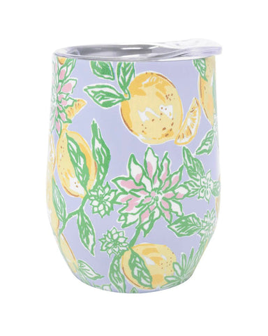 Stainless steel tumbler with a double wall body and a clear acrylic lid with a silicone seal. 30 oz capacity.
