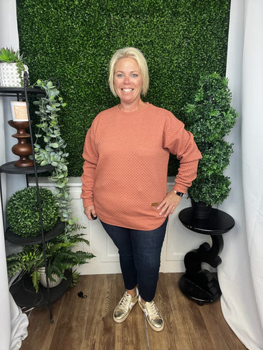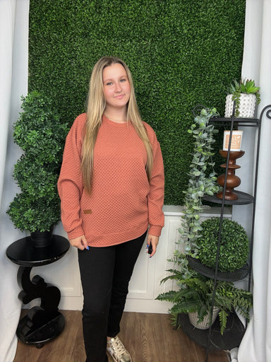 Add a cozy touch to your casual wardrobe with the Kerry Quilt long sleeve top in warm copper. Its quilted texture provides subtle dimension and com...