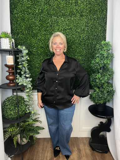 This black v-neck collar button-down top combines classic tailoring with an elegant silhouette. Its refined design and sleek finish make it perfect...