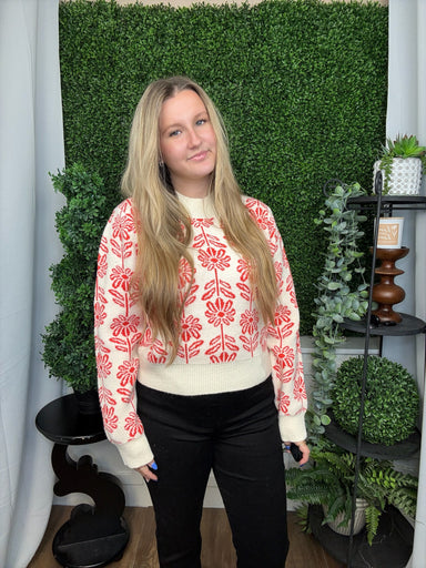 Brighten your wardrobe with this floral pattern knit sweater in vibrant tangerine tango. Soft and cozy, its playful floral design adds a cheerful, ...