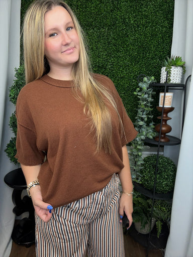 The Raw Edge Accent Comfy Sweater Top in brown combines cozy comfort with stylish details. Its raw edge accents add a trendy, effortless charm, whi...