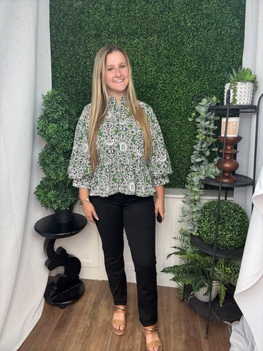 This ash olive button-down top features playful bubble sleeves that add a cute, whimsical touch to your fall wardrobe. Its soft, earthy color and r...