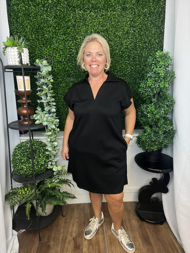The Solid Collared Pocket Dress in black effortlessly blends classic style with playful charm. Featuring a crisp collar and handy pockets, this dre...