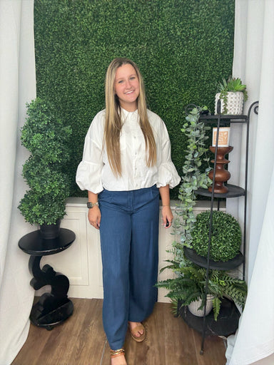This off-white button-down top features charming bubble sleeves that add a playful, cute touch to your fall wardrobe. Its soft hue and relaxed fit ...