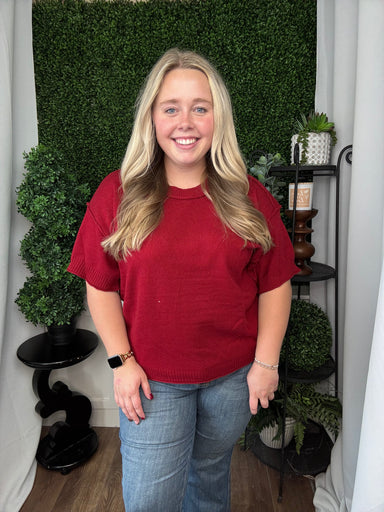 The Raw Edge Accent Comfy Sweater Top in Burgundy combines cute style with cozy comfort. Its rich burgundy color and subtle raw edge details create...