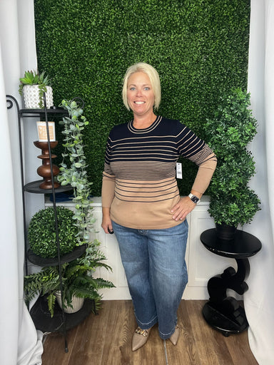 This boat neck 3/4 sleeve top in a lively multi-color pattern balances cute charm with a dressy feel. The flattering boat neckline and three-quarte...