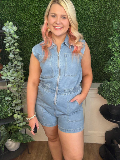 This mineral wash sleeveless romper in denim offers a playful and relaxed look perfect for sunny days. Its soft, worn-in texture adds a vintage vib...