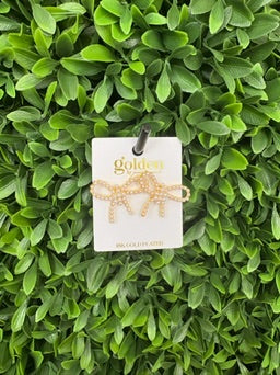 $26.99| /The 18K gold plated pave pearl bow earrings combine delicate pearls with sparkling pave details in a charming bow design. These earrings add a touc...