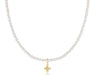 17" choker beaded - classic pearl 3mm - signature cross gold charm
