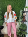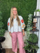 This embroidered stripe babydoll top combines playful charm with delicate detailing. Its soft fabric and relaxed fit provide comfortable wear, while the charming stripe pattern and intricate embroidery add a cute, feminine touch. Perfect for casual days when you want to feel effortlessly sweet and stylish.