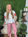 Abby, 5'3" is wearing a size medium. Renee, 5'2" is wearing a size large. Payton, 5'5" is wearing a size small. Taylor, 5'8" is wearing a size small.