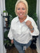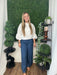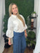 This off-white button-down top features charming bubble sleeves that add a playful, cute touch to your fall wardrobe. Its soft hue and relaxed fit make it perfect for layering or wearing on its own during cozy autumn days.
