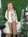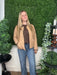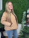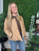 Stay warm and fashionable with this Solid Quilted Jacket in Camel, featuring a charming contrast collar for added style. Its quilted design provides cozy insulation while maintaining a sleek silhouette. Perfect for layering on chilly days, this jacket adds a cute and stylish touch to any outfit.