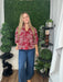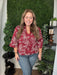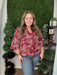 This burgundy V-neck blouse features wide sleeves, offering a cozy and stylish look perfect for fall. Its rich color and relaxed fit make it an ideal piece for layering on crisp autumn days with effortless seasonal charm.