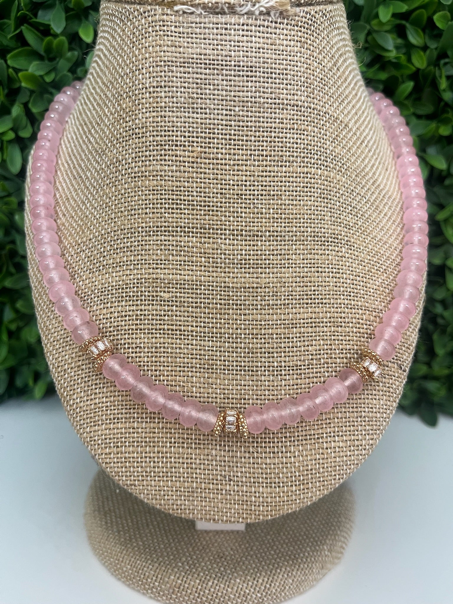 16" rose beads w/gold & crystal clusters necklace