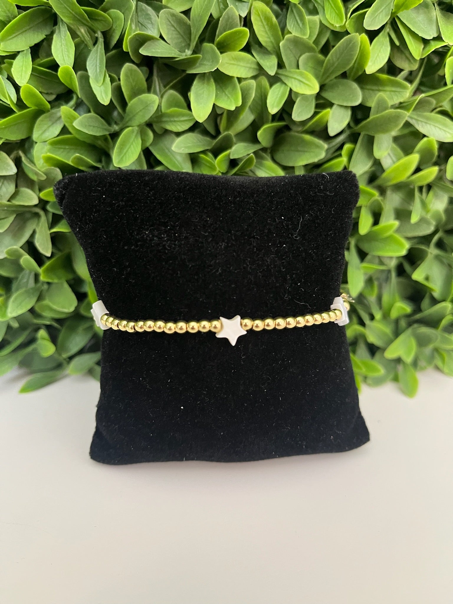 3mm h2o resistant gold ball bracelet w/5pc shell star