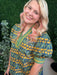 floral pattern cuff band short sleeve top - teal