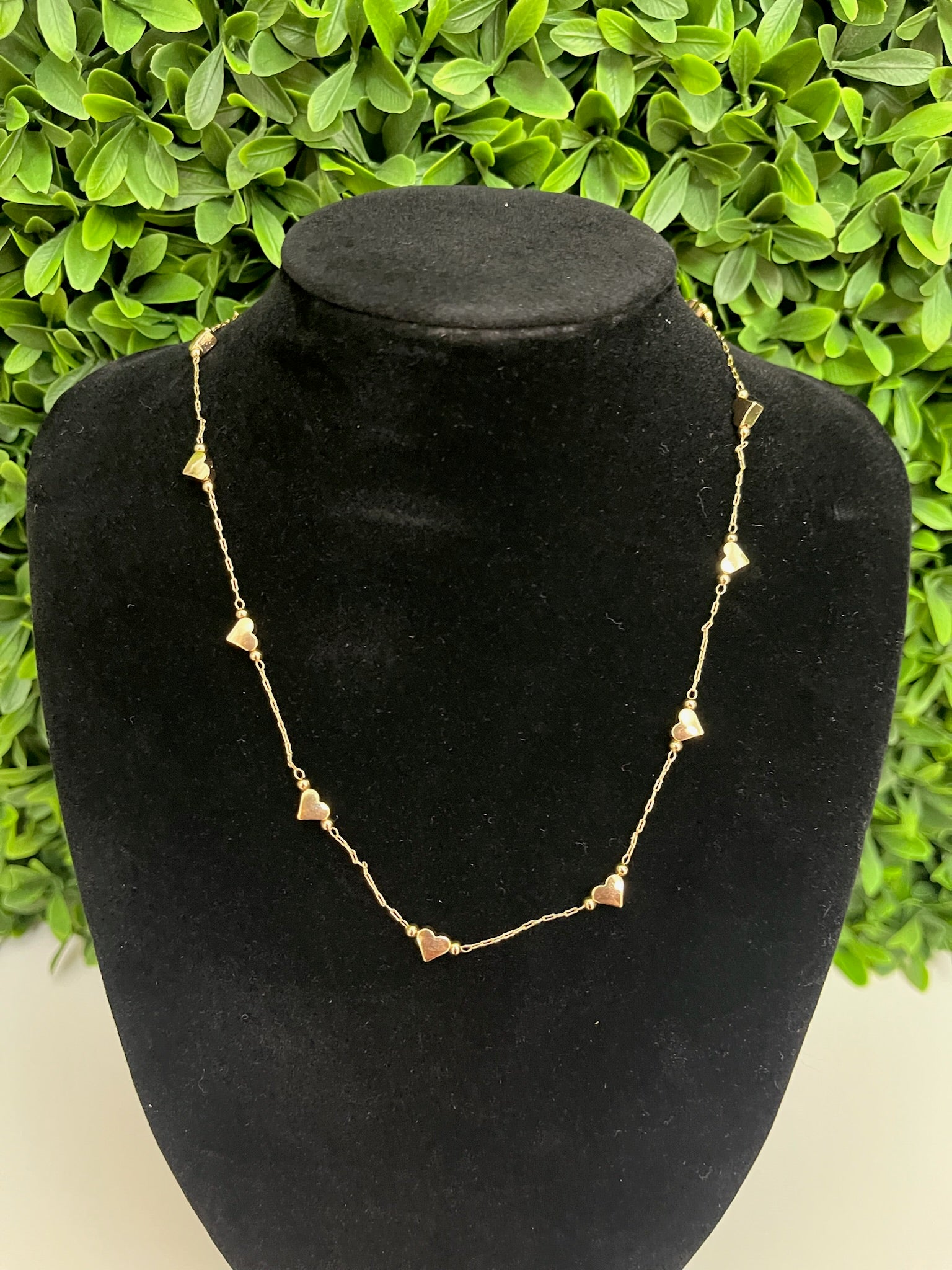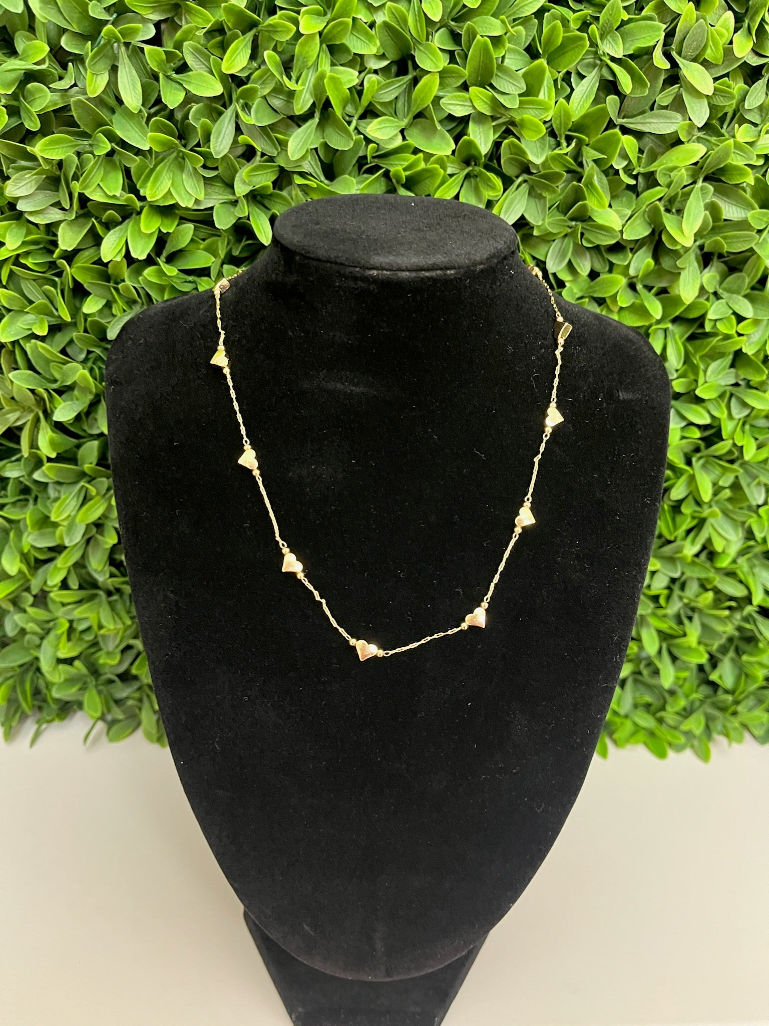 The Leandra Delicate Heart Chain Necklace in shiny gold features a refined, minimalist design with a subtle heart pendant. Crafted for elegance and everyday wear, this delicate necklace adds a graceful touch of warmth and sophistication to any outfit.