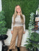This long sleeve boat neck knit top in alabaster with multi-stripe detailing offers a perfect blend of cute and dressy style. The soft knit fabric drapes comfortably while the elegant boat neckline adds a refined touch. Its subtle stripes bring a playful yet polished look, ideal for both casual outings and more dressed-up occasions.
