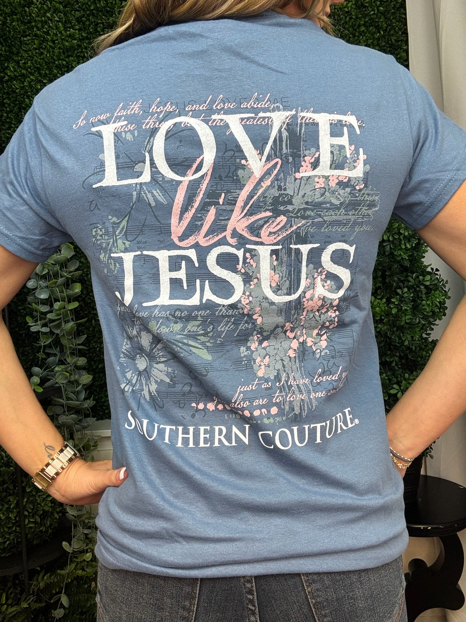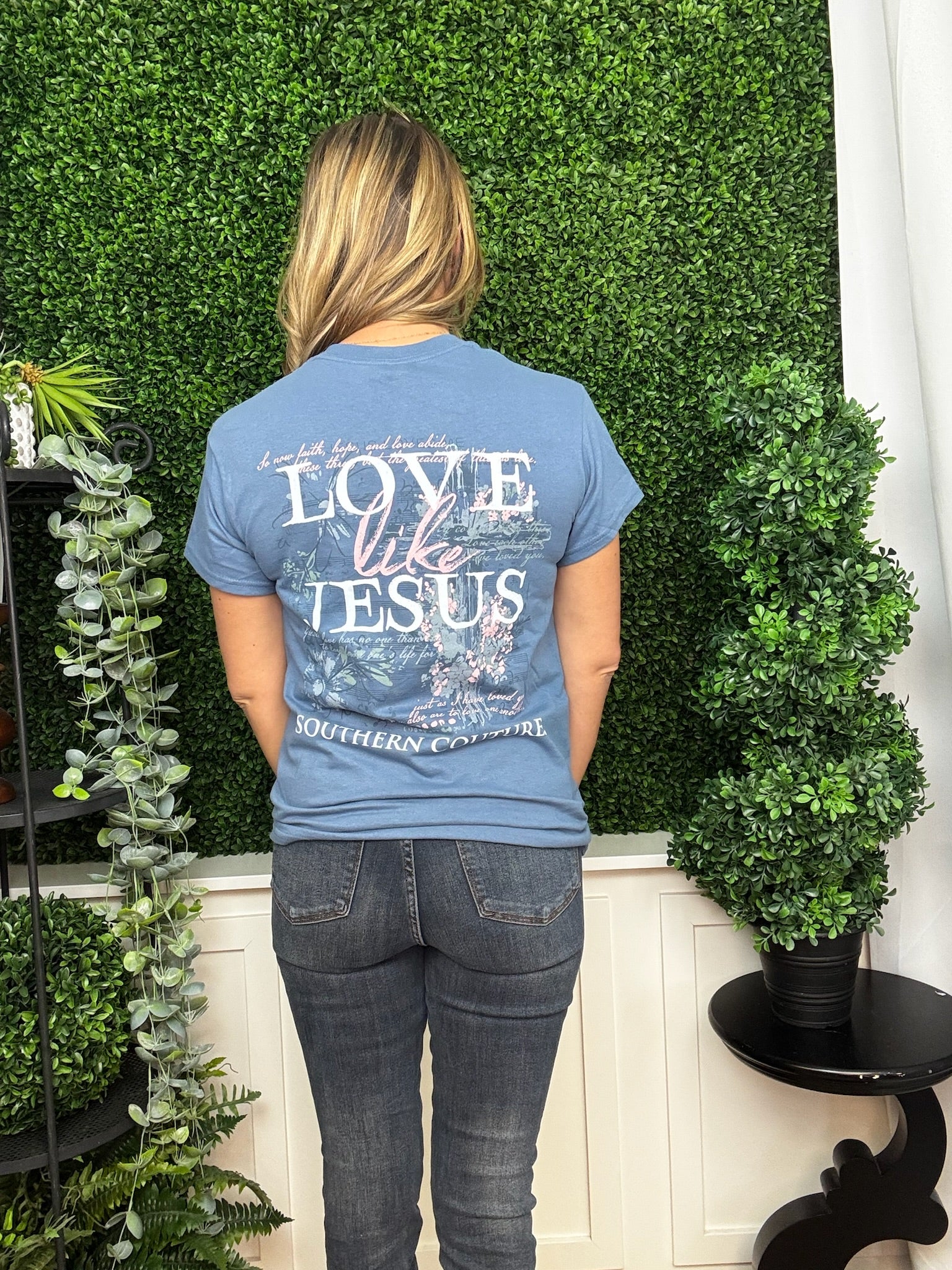 Show your faith with our LOVE LIKE JESUS SS - INDIGO shirt. Featuring a powerful back print of Jesus, this short sleeve shirt is both comfortable and stylish in indigo. A perfect way to express your beliefs.
