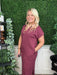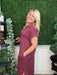 Solid knit split collar short sleeve midi pullover midi dress featuring side slit. Pockets at sides. Unlined. Knit. Non-sheer. Lightweight.
